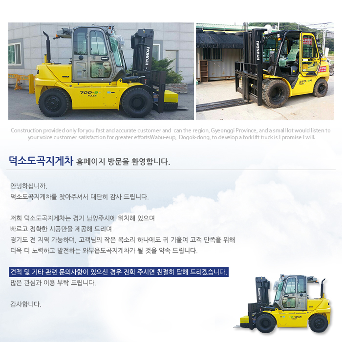 덕소도곡지게차 소개 > 인사말